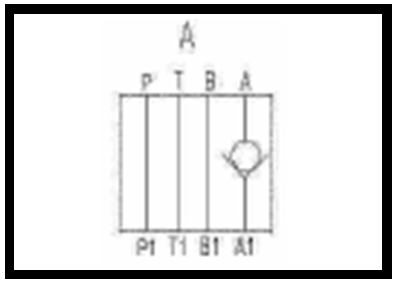 P = Kanal P; Durchflussrichtung von P1 > P; gesperrt von P > P1