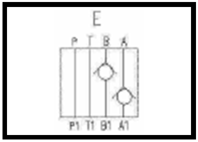 E = Kanal A/B; Durchflussrichtung von A > A1 + B > B1; gesperrt von A1 > A + B1 > B