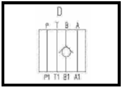 D = Kanal B; Durchflussrichtung von B > B1; gesperrt von B1 > B